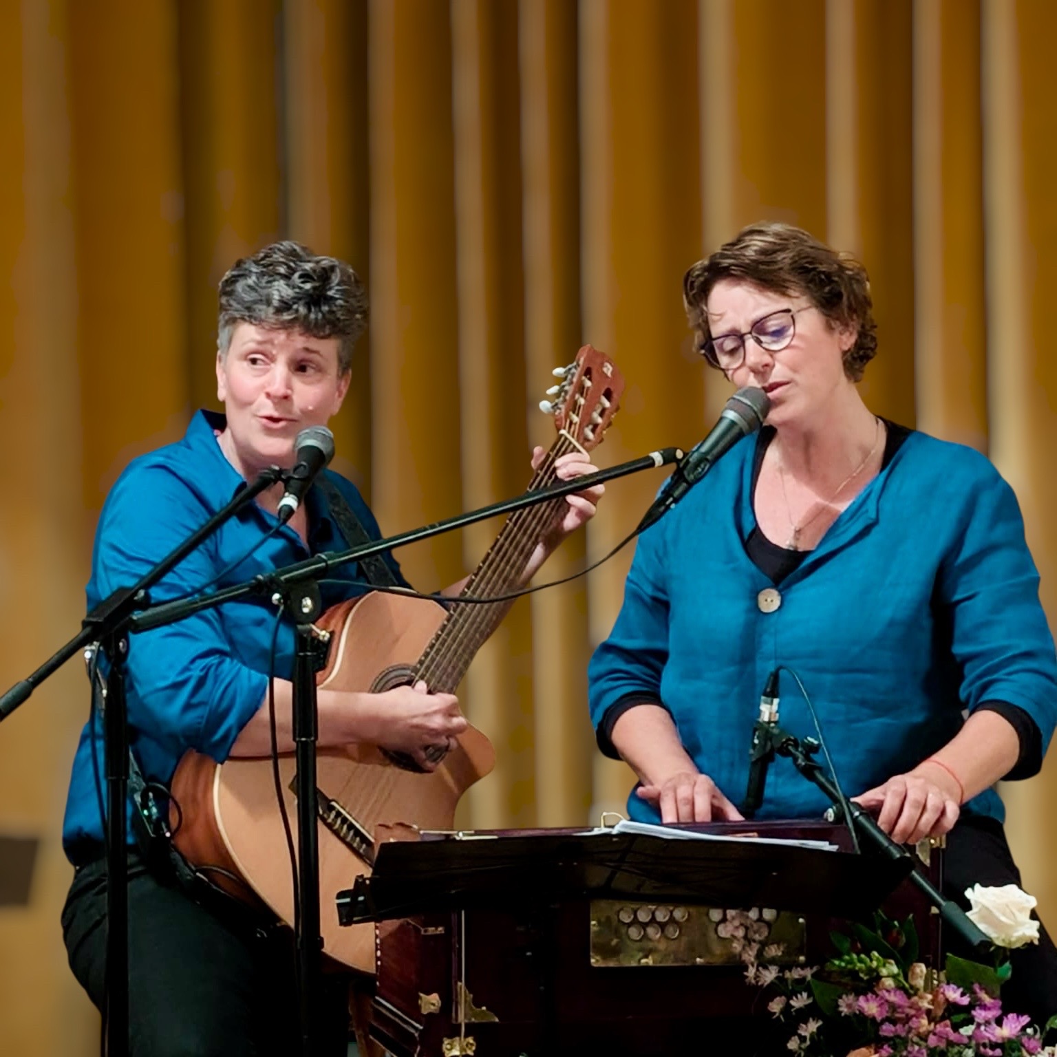 Dit singer-songwriter duo zingt liederen die ze zelf schrijven en bestaande liederen die ze na aan