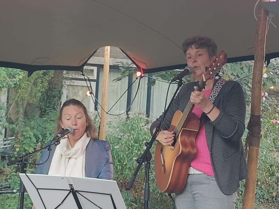 Dit singer-songwriter duo zingt liederen die ze zelf schrijven en bestaande liederen die ze na aan
