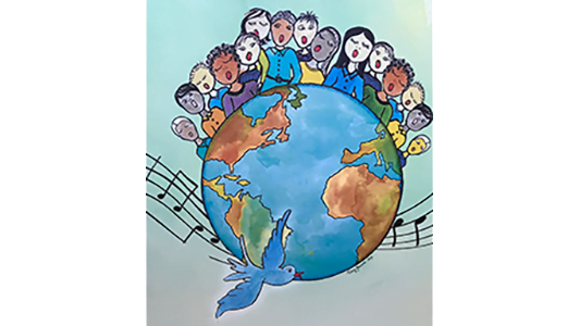 Een vrolijk en groot Wereldmuziekkoor met ca. 60 leden dat 3- of 4- stemmig authentieke muziek van over de hele wereld zingt.